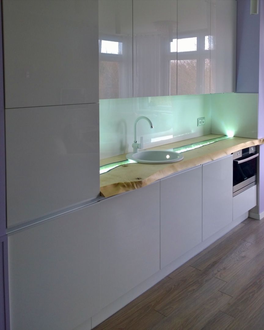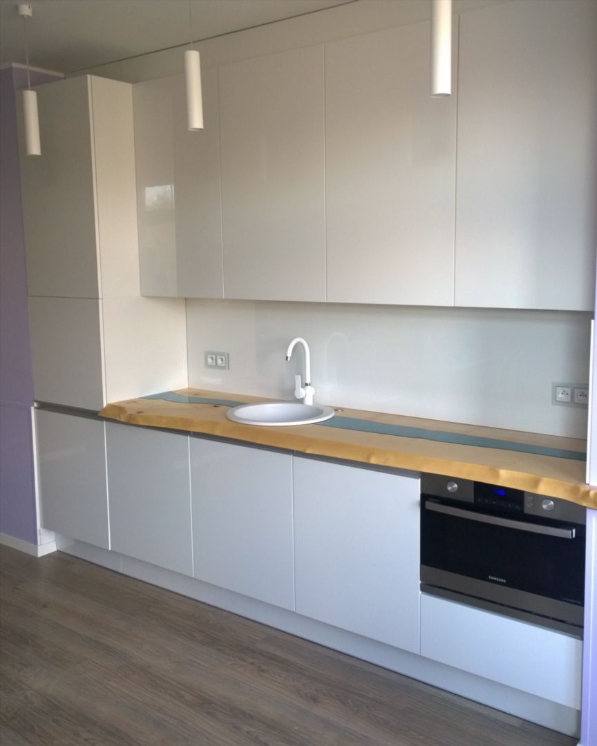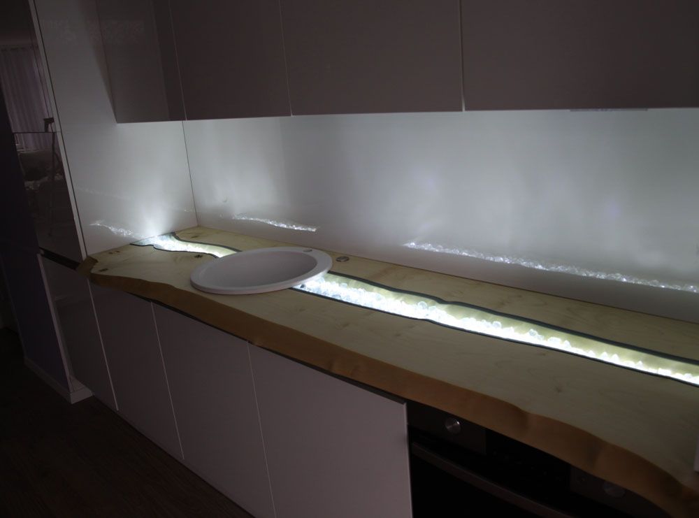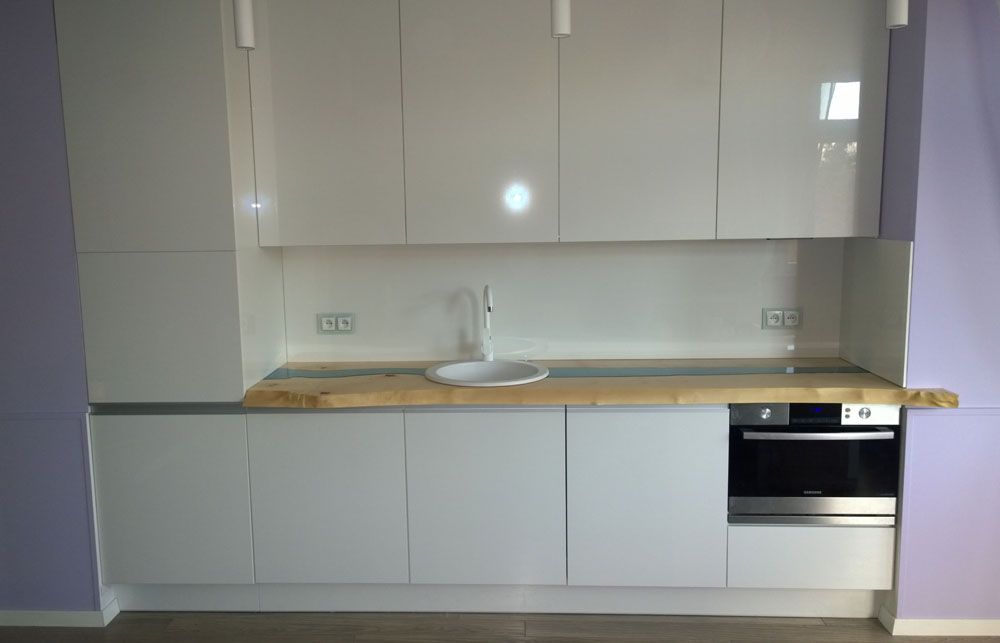 Efekt podświetlonych w blacie kryształów, tworzy wyjątkowy klimat płynącej rzeki. Jakość wykonania kuchni w Gdyni i autorski pomysł drewnianego blatu wyróżnia naszą firmę. Nowoczesna linia wzornicza, połyskująca biel powierzchni wprowadza porządek, elegancję i otula wnętrze luksusem. Surowy wygląd drewnianego blatu znakomicie przełamuje nowoczesną prostą formę kuchni nadając jej charakteru. Funkcja jest ważna , ale najważniejsze jest poczucie opcowania ze sztuką, bo to daje wyraziste artystyczne wnętrze. Zapraszamy do zapoznania się z naszą realizacją.